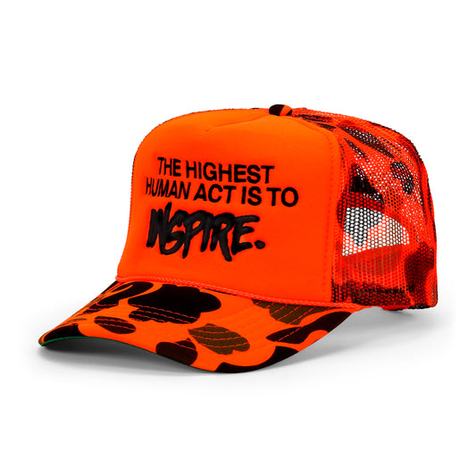 Sold outINSPIRE TRUCKER HAT - [ORANGE CAMO]